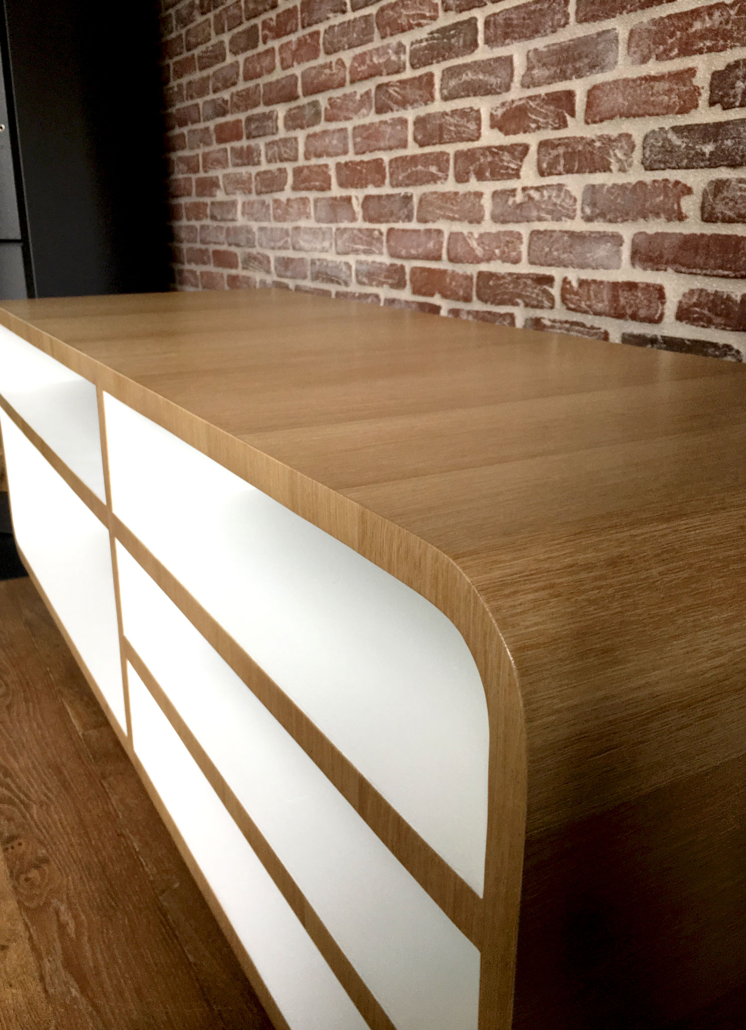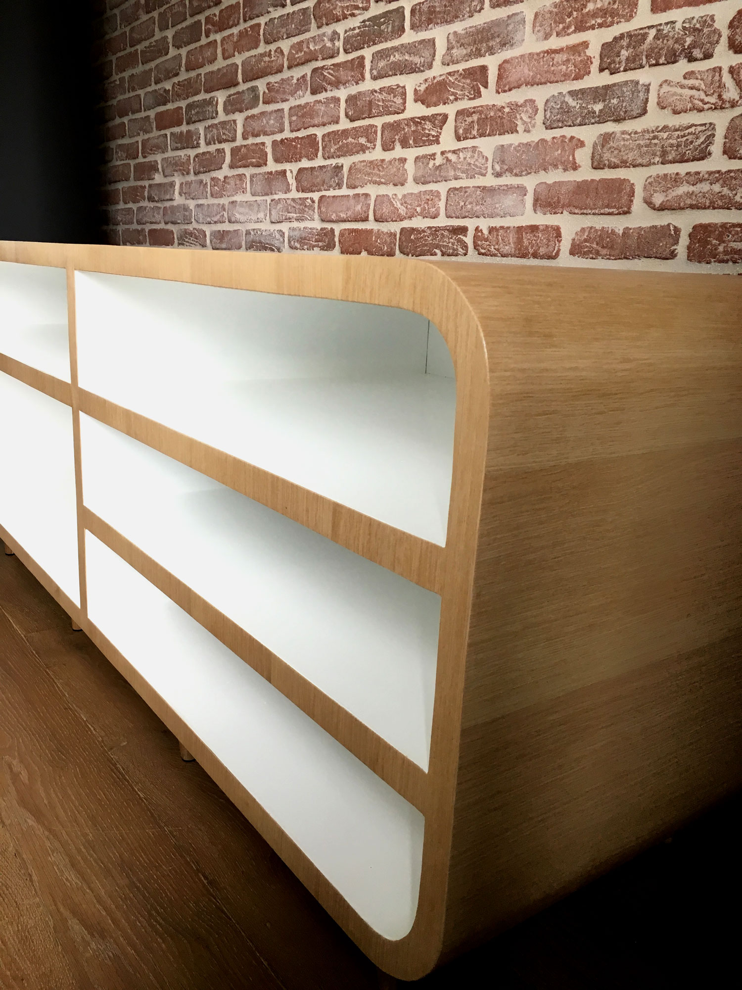 Un goût de déjà vu ou plutôt une deuxième version de meuble cintré plaqué chêne avec de belles courbes comme on aime.